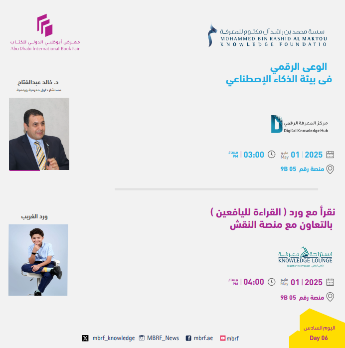 معرض أبو ظبي الدولي للكتاب - فعاليات اليوم السادس