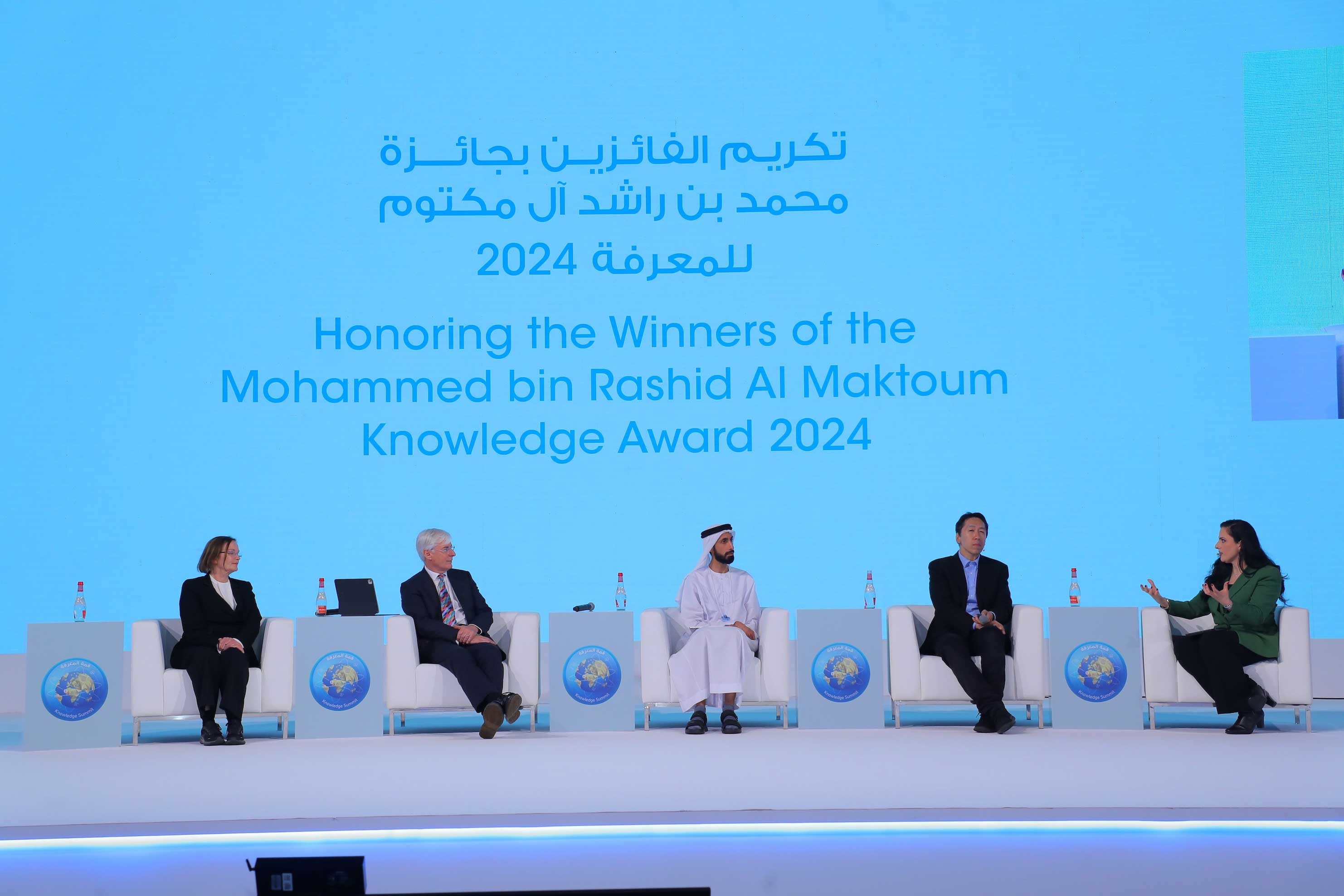 Dubai, UAE, 19 November 2024- The winners of the Mohammed bin Rashid Al Maktoum Knowledge Award (MBRKA) 2024 showcased their intellectual, creative, and humanitarian contributions that led them to receive this prestigious honor, during their participation in a distinguished panel session as part of the proceedings of the Knowledge Summit 2024, which is being held at the Dubai World Trade Center on November 18 and 19, 2024.